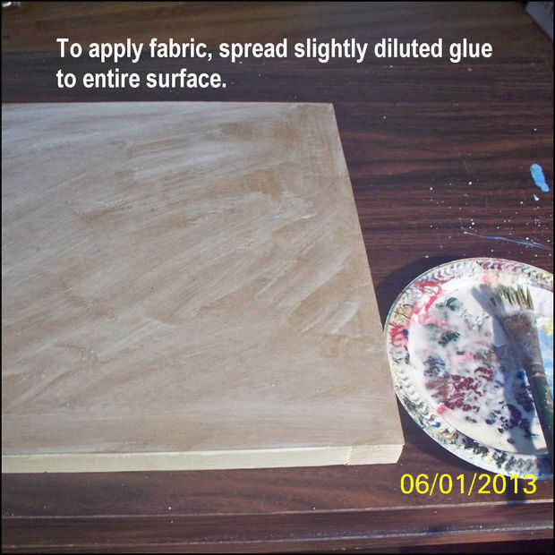 Pegamento se extiende sobre aglomerado con un cepillo.  Ayuda al pegamento un poco diluida con agua pero no exagere.