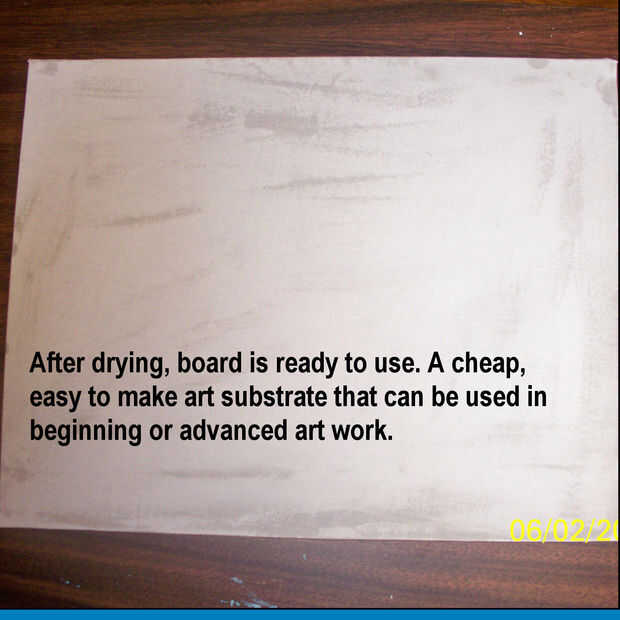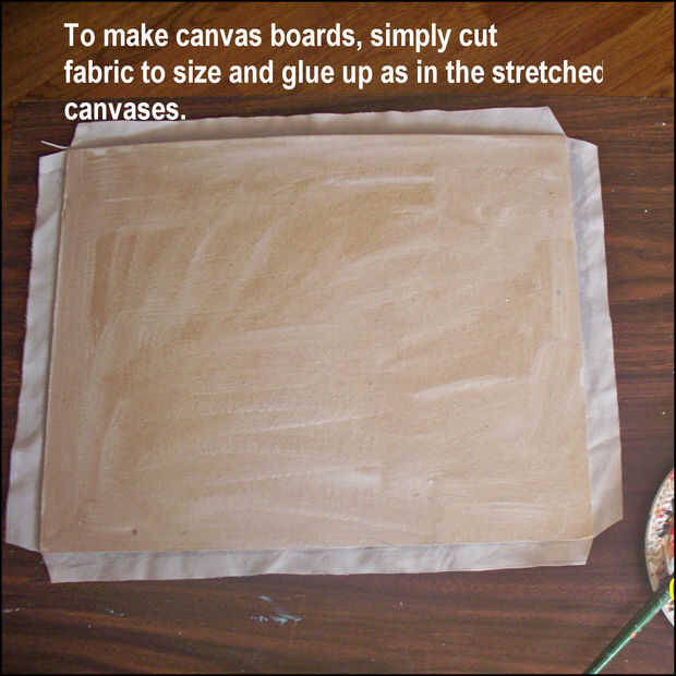 Un lienzo más simple pero eficaz puede hacerse cortando conglomerado solicitado al tamaño, cubierta con el pegamento y colocar material a esta superficie. Estos se venden como tableros de la lona por los proveedores de arte.