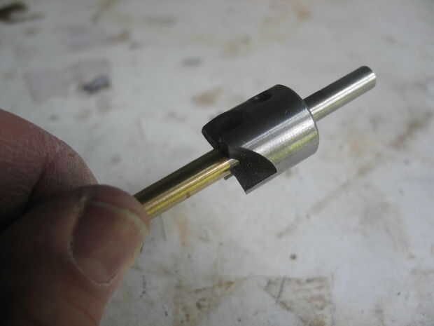 Uno de los extremos del tubo se enfrentarán con un molino de pluma de 7mm. Lo puede hacer a mano como el tubo de latón es fino y suave. No retire demasiado o el tubo será demasiado corto.
