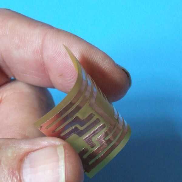 Foto 3 muestra el tablero de Adafruit Pyralux que fue grabado de la misma manera. El material del tablero es muy delgado, menos de. 001"