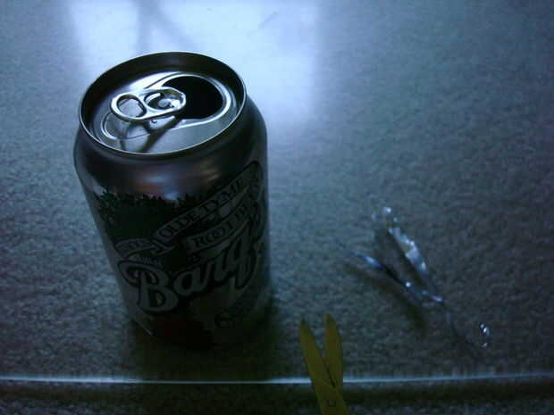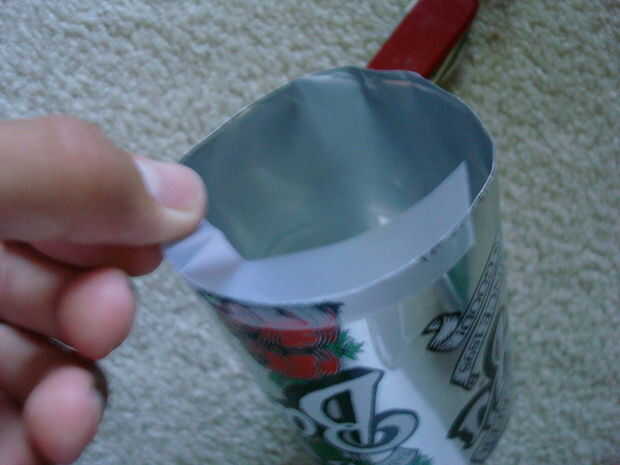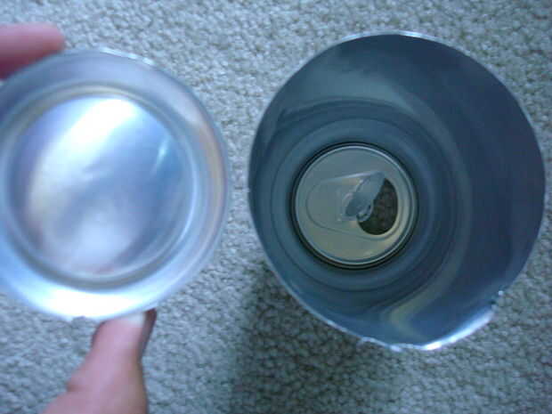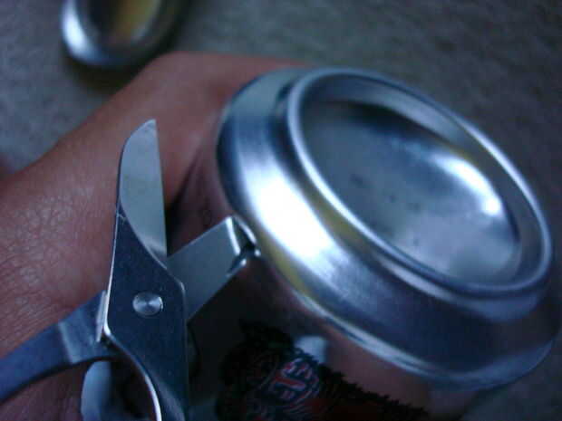 2. hacer un agujero en la parte inferior como se muestra... tenga cuidado! cortan todo el camino alrededor de la lata, quitar el fondo.