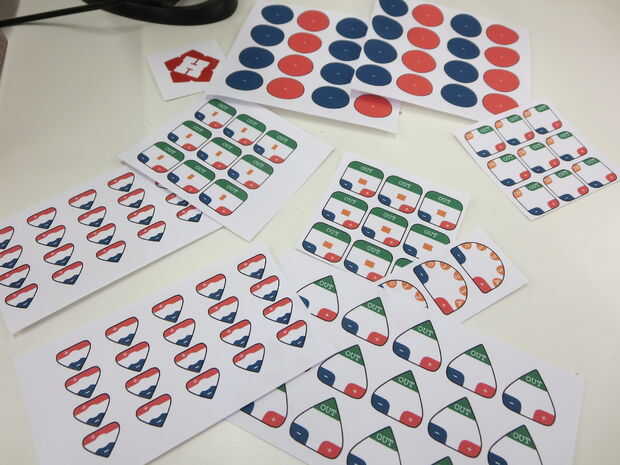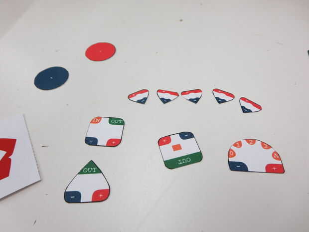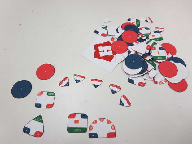 Por lo tanto, mi solución, he diseñado unas plantillas de código de color en inkscape que imprimí en la masa y cortar. Esto me permite mover bits alrededor, y con todo ser color cifrado encontré fácil visualmente ver cómo las cosas deben ser cableadas.