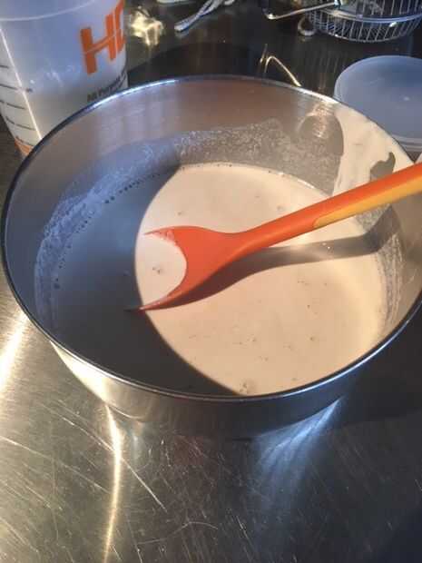 Las indicaciones de la caja dice que mezcle 1.5 piedras 1 parte agua o consistencia de la mezcla como un panqueque. Yo utilizó el cuadro entero y tuve que agregar agua un poco mas de las indicaciones sugeridas, manteniéndolo como mezcla de panqueque.