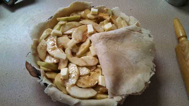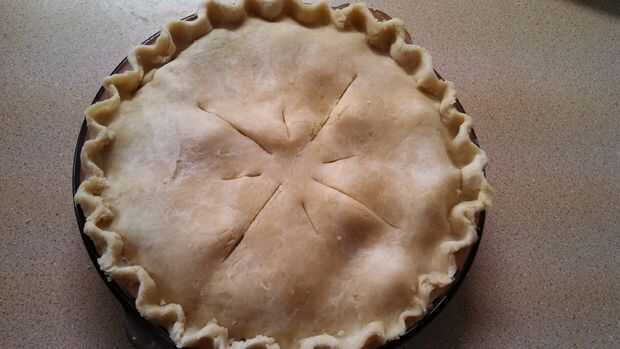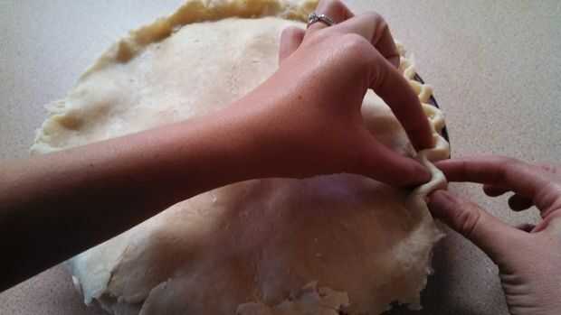 Después de la corteza superior está montada sobre el pastel, cortar ranuras en la parte superior para liberar el vapor al hornear.