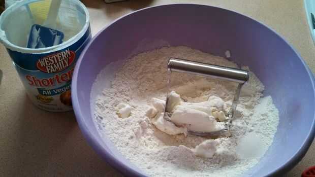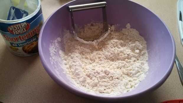 Paso 2: Corta en 2/3 de taza más 2 cucharadas de manteca usando un mezclador de repostería.