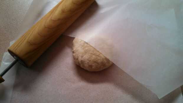 Utilizar un rodillo para estirar ambas rondas de tarta.  Estirar sobre una superficie enharinada para evitar que se pegue o entre dos pedazos de papel encerado como se muestra.