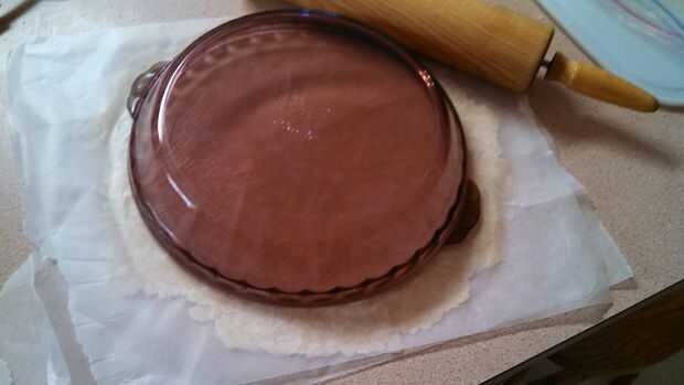 La corteza debe ser aproximadamente dos pulgadas más anchos en diámetro que la tartera al revés.  Se trata de aproximadamente una pulgada de la base de la tarta que se extiende alrededor de la tartera por todos lados.