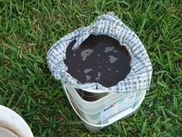 Después de esperar el proceso de elaboración de la cerveza completar, usted necesitará filtrar el té para que pueda propagar sin estorbar lo que es lo que utilizan para llevar el té a sus plantas. Para este paso, usted tendrá que tener otro cubo, algún tipo de malla fina, tengo una vieja funda de almohada para esto y algo que soporte la malla sobre el cubo mientras se vierte el té a través de él. Esto tomará algún tiempo, y usted tendrá que limpiar la malla unas cuantas veces, ya que hay una gran cantidad de sólidos disueltos en la mezcla. Realmente sería mejor que varias piezas de acoplamiento a la mano para conseguir esta parte hacer lo antes posible. Terminarás con dos cosas, la primera es el té que estaban tratando de hacer y el compost en la parte inferior de su cubo de cerveza. El compost en el cubo de la izquierda ha hecho su trabajo y puede sólo ser vertido hacia fuera en su jardín como lo haría cualquier tipo de fertilizante. El té se puede propagar por cualquier medio que se extendería un fertilizante líquido tradicional. La única precaución que tienes que tomar es que si decides pulverizar el té sobre las partes comestibles de la planta, a continuación, asegúrese de que usted Lave muy bien las plantas antes de comerlos. Otros entonces que, el té es un abono universal que se debe obtener excelente resultados de.