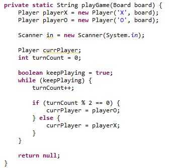 Cuando es un número, playerO va a ir, de lo contrario es de playerX girar a. % Se llama a un módulo. Encuentra el resto de un número después de que se ha dividido. En este caso, estamos el resto después de turnCount se divide por dos. Si el resto es cero, es un número par.