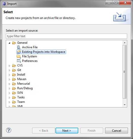 Para este proyecto, escribió la mayor parte del código para usted. Para conseguirlo en su Eclipse, sigue esto: