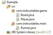Hay tres clases de este proyecto--tablero, el jugador, un corredor. Cuando se decide que las clases deben realizarse para un proyecto, piense en los elementos de lo que estás haciendo. En este caso, Tic Tac Toe sólo tenía dos elementos destacados: un jugador para jugar el juego y un tablero para jugar al juego. Programas más complejos requieren más clases.