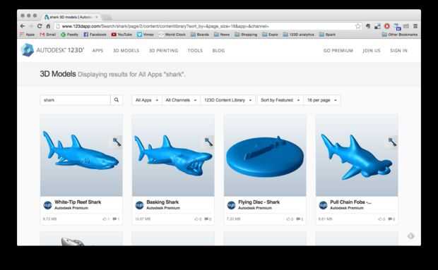 Para este tutorial, usaremos el Tiburón de arrecife de 123D construir un bot de tiburón, pero hay mucho más modelos en la biblioteca de contenido 123D. Aquí es un tiburón en la página relacionada con modelos. Necesitarás una cuenta 123D gratis descargar modelos.