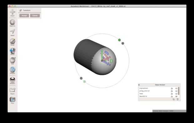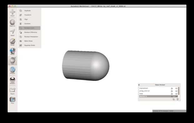 Si vas a volver a utilizar esta forma, digo si quieres ahuecar la cola de los tiburones, o para aplicar a un diverso estilo de la cabeza, debe duplicar en el proyecto Meshmixer. De lo contrario, se "perderá" cuando te subract que la cabeza del tiburón en el paso siguiente.