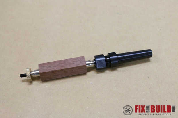 Una vez que los espacios en blanco estén cortadas al tamaño montar en un mandril de pluma. Este es el mismo mandril utilizado para hacer plumas de escritura. Hay bujes especiales que es necesario utilizar. Coincidir con el tamaño del espacio en blanco a los bujes en los extremos y esto le dará un ajuste al ras cuando montan el hardware.