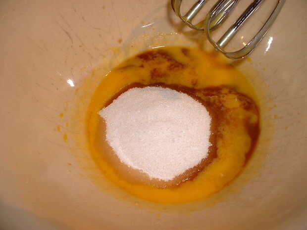 2. batir las yemas con 1/2 taza de azúcar y una cucharada de café y una cucharada de la courvoisier venció por completo 5 minutos hasta que el azúcar se disuelva y la mezcla esté suave.