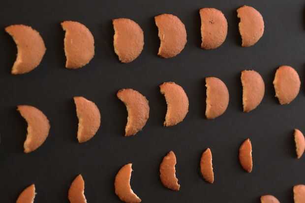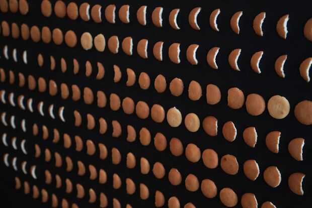 Por favor configurar el tablero de la forma en la pared! Para configurar el tablero de forma, puede utilizar el alfiler o cinta de doble cara. y luego, tienes que configurar el proyecto para formar y organizar cada bocado. Después de eso, morder la oblea hace referencia a la tabla de ciclos lunares y luego poner el pegamento en la parte trasera de la oblea usando pegamento caliente. Por último, poner cada pedazo de oblea en el tablero de forma que siguiendo las formas lunares!