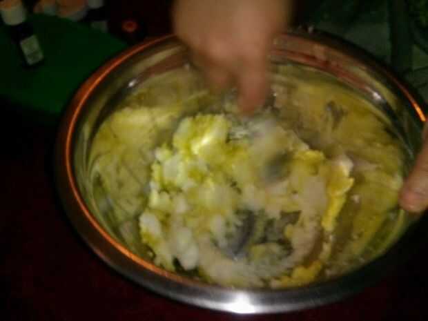Si no calientan el aceite de coco, bien, que tenga que usar esos músculos todo mezclado suavemente. Triturar todos los pedazos hacia fuera.