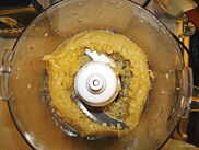 Del pulso hasta que el ajo finamente picado y bien mezclado con la sal, parando de vez en cuando para raspar la mezcla al centro del recipiente. ESTE ES UN PASO CRUCIAL! No se apresure el procesamiento del ajo con la sal. Repita el proceso y raspado al centro hasta que el ajo es muy fino - ciclos de cinco a diez.