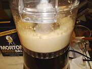 Llovizna poco a poco el aceite en el procesador de alimentos. La corriente debería parecerse a un hilo delgado - la clave es verter lentamente. Inicialmente, se verá como la sopa de ajo y aceite, pero, cuando se agrega suficiente aceite, el ajo, sal y el aceite reaccionan y se combinan en una emulsión blanca. A oír un cambio en el tono del motor procesador de alimentos así como ver el cambio en el tazón de fuente.