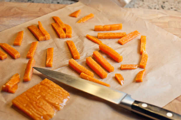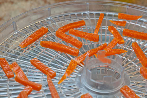 Cortar la masa en tiras de 1/4 de pulgada por 2 pulgadas. Los ponen en la bandeja de un deshidratador y secar durante 8-10 horas, hasta que no estén esponjosas. En este punto la receta original dice que podría almacenar en un recipiente hermético hasta por 3 meses. (No tengo tiempo para eso. Fecha límite para el concurso es en dos días y que realmente ahora me preguntaba cómo estas cosas busca plástico iba a hincharse para arriba y ser comestible).