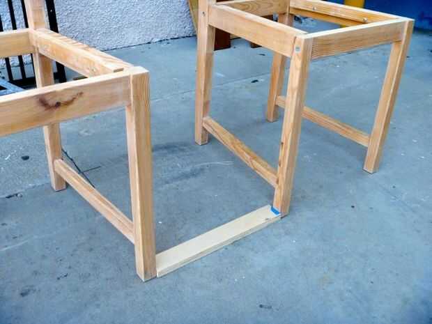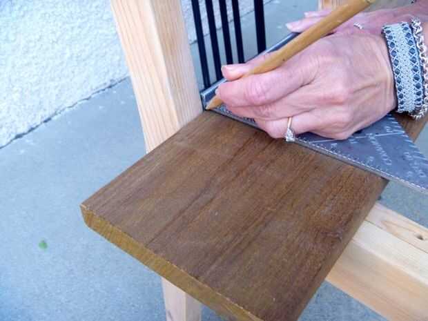 A continuación, decidir las medidas de proyección para el lado y la parte delantera del Banco. Cortar el asiento a medida.