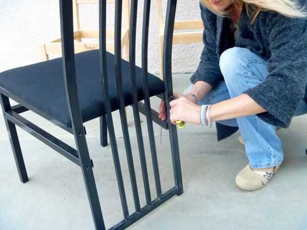 Arreglar sillas, prestando especial atención a la separación entre ellos. Cuando mina fueron presentado, me gustaba el revoltijo de piernas en el centro, así que decidió quitar las patas delanteras de mi silla del medio.
