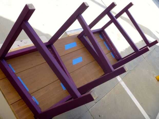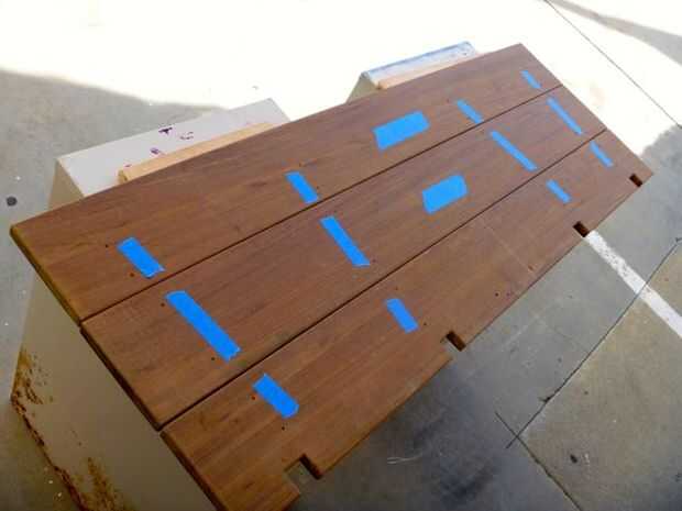Una vez que la pintura esté completamente seca, Coloque tablones de asiento, asegurándose de que todas las placas se fijan correctamente. De por debajo, utilice un lápiz para transferir la colocación de la silla sobre placas de cubierta.