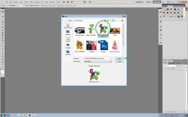 Una vez hayas abierto Photoshop, vaya a archivo, abrir y buscar el archivo en el equipo, una vez que hayas hecho esto haga clic en abrir. Ahora que tienes tu foto abierta, vamos a comenzar por eliminar el fondo blanco. Usar la magic wand y haga clic en el fondo blanco, una vez seleccionado el fondo, golpean el botón delete en el teclado. Ahora que se elimina el fondo, abrir la imagen de la persona que desea photoshop sobre Yoshi.