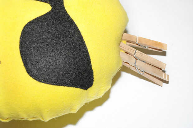 Una vez que has llenado tu almohada con suficiente relleno, pegue la brecha cerrada. Utilice pinzas para sujetarlo hasta que se seque. Usted puede también simplemente mantenerla hasta que se seque, pero si te encuentras pegado a emoji, recuerde digo utilizar pinzas para la ropa!