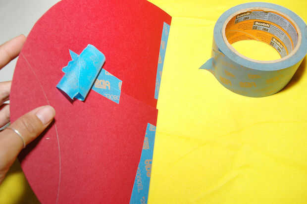 Imprimimos y maquilamos: el patrón de círculo. Colóquelo sobre el fieltro amarillo. Si usted está teniendo problemas para mantener el papel todavía mientras se trazado, cinta de la parte posteriora del patrón a la tela. Ahora trace una línea alrededor del patrón. Hacer otro círculo para el otro lado de la almohada.