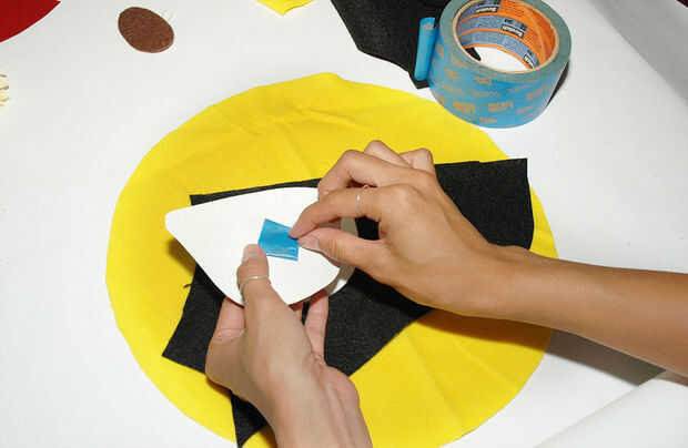 Coloque cada una de las características sobre el fieltro marrón o negro y corte. Consejo: Para mantener su patrón de movimiento mientras que usted está cortando, cinta de la parte posteriora del patrón para el fieltro.