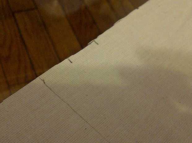 Escoger un borde corto, mida 6.5" de que el borde y Marque a la tela. Luego marque 3/4" y 1.5" de esa marca de línea. Estas marcas van a ser guías para plisar.