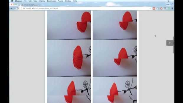 Si está cargando un vídeo, haga clic o arrastre el archivo editado en la caja gris de "subir video". Puede tomar un poco de tiempo para cargar y procesar, dependiendo de tu conexión y el servidor. Cuando ha terminado el proceso, verás una vista previa de baja resolución (no te preocupes, las imágenes de la finales se ven mucho más bonita). Si todo se ve la forma que desee, haga clic en el botón para crear la plantilla para imprimir. Se generará un pdf que puede descargar.