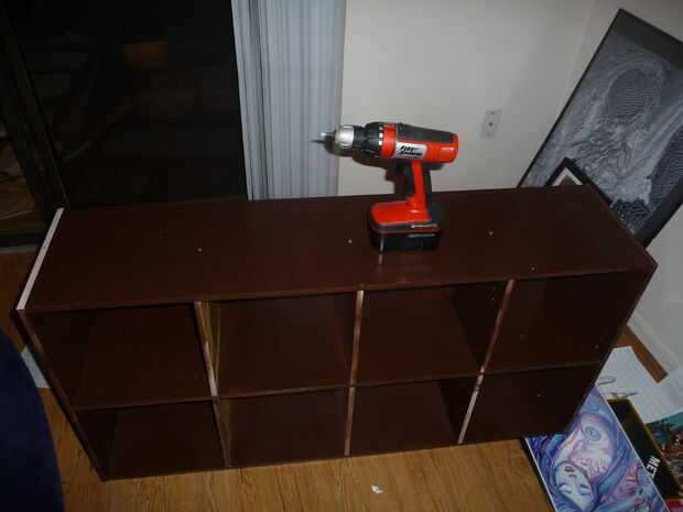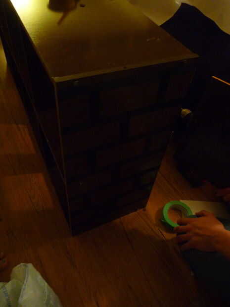 Una vez seco, utilice cinta de pintor para esbozar las líneas de ladrillo y acrílico negro pintar en líneas.