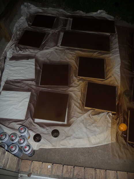 Rocíe la parte de atrás de las puertas marrones y el frente del oro.