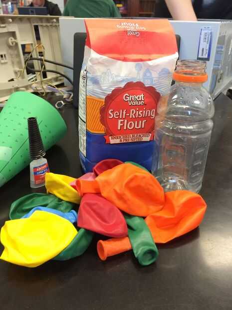 -Harina - globos de fiesta - una especie de botella de agua de boca ancha - pegamento