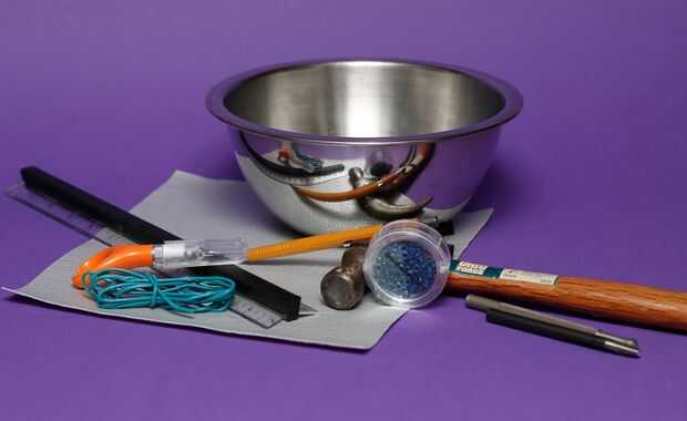 Bueno aquí es lo que necesitarás: 12 piezas de cuero o cuero artificial. Usé el último para la rentabilidad. Un recipiente para rastro. Había usado cerca de 10 pulgadas a través. Lápiz regla corte mat (opcional) cadena de cuero del cuchillo (o sintético) Grommits y herramientas (mantenga sacador, sacador del ojal, martillo y ojales)-fácilmente disponible en tiendas de artesanía o en línea. Tuve de scrapbooking.