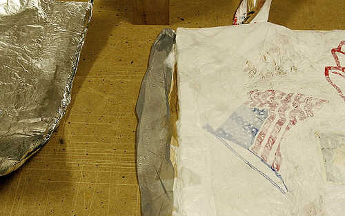 he visto un montón de tutoriales para bolsas de supermercado, bolsas y similares, pero nunca encontré uno que era bastante fácil para alguien como yo a seguir. Hay un excelente de Craftster que hace un bolso de la camiseta casi exactamente como este