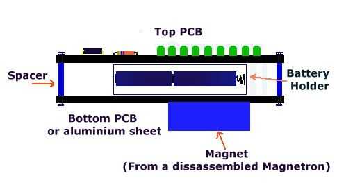 Un gran imán que rescatado de un magnetrón de microondas se pega a la Junta Directiva del fondo. Usando un imán grande significa que la bomba de Boston será capaz de sostener muchas notas de la escuela.