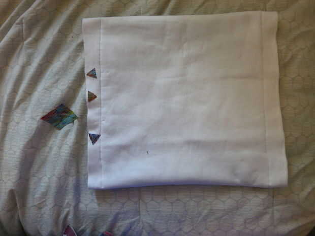 "Corte 2 piezas de tela, la pieza externa será sobre 33″ largo x 12″ ancho. La segunda pieza de tela es el forro, cortar para ser 33″ largo y 2 pulgadas más corto, por lo que la pieza exterior se transfieren en el interior un poco. PIN y coser derecho lados juntos los bordes juntos"
