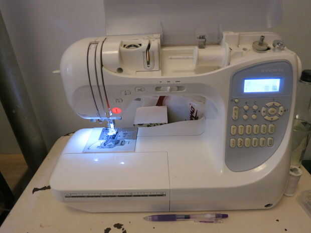 Usar una máquina de coser - pero este patrón es bastante simple y usted puede apenas mano coser así.