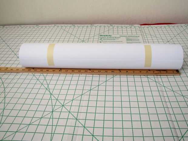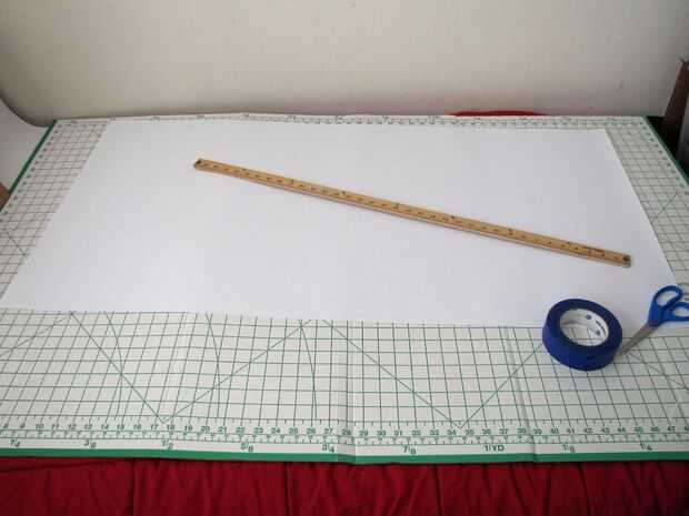 El ancho de la hoja corte un poquito más pequeño que el ancho interior de la caja. La longitud debe ser la altura + longitud del interior de la caja. Ya que mi caja es un cubo y el interior es cerca de 24 pulgadas (61 cm) en las tres dimensiones, entonces el tamaño de mi hoja de antecedentes debe 24 pulgadas de ancho por 48 pulgadas (122 cm) de largo. Es mi suerte que el rollo ya es 24 pulgadas de ancho