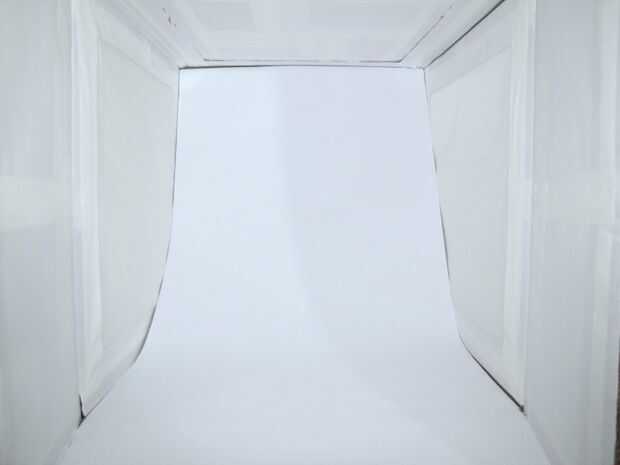 Ya sabes doblar para arriba de la caja, pero es importante que primero tire hacia fuera de la hoja de fondo cuidadosamente para evitar pliegues ni arrugas visibles en la hoja. Rodillo de borde doblado primero e ir con la curva natural cuando se instaló en la caja. Use una cinta de bajo tack como la cinta azul para asegurar el rollo.