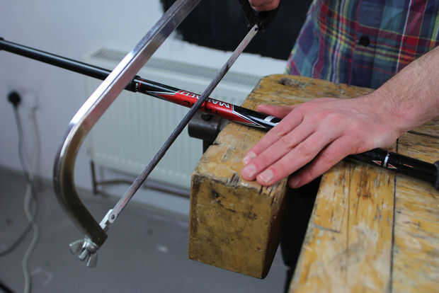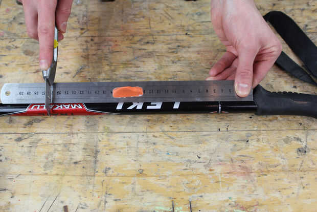Tomar su bastón de esquí (o tubo de PVC, pasador de madera, etc.), mida y marque una longitud de 25-30cm de la parte inferior del mango.