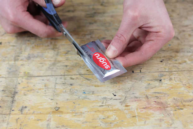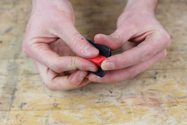 Corte abierto uno minipacks y amasar sugru en los dedos durante unos 10 segundos.