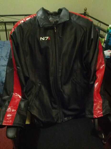 Alteré una chaqueta de cuero inspiradora por las chaquetas de N7 de la comandante shepard de efecto de masa