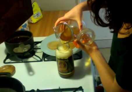 Ahora que el SCOBYs de la jarra, vierte el té fermentado en un frasco limpio. Asegúrese de que usted Vierta lentamente como el té es muy efervescente. Puede guardar el té para beber en el refrigerador. Además, asegúrese de que usted viértalo en un vaso plástico reacciona con el té y no es bueno para usted.