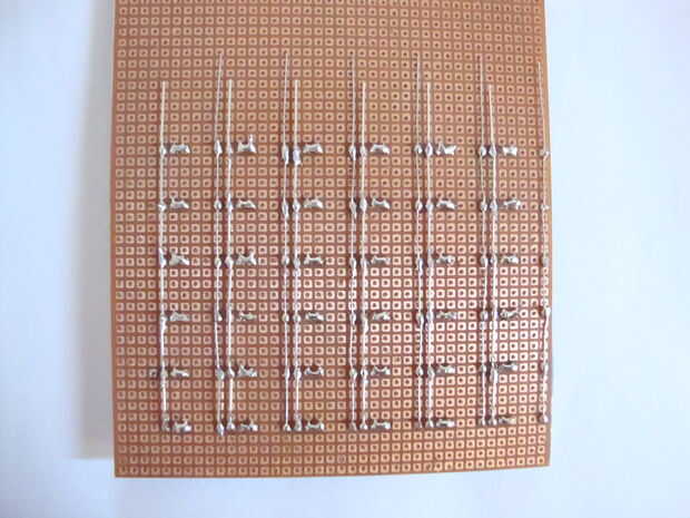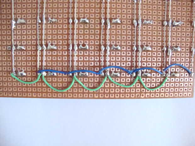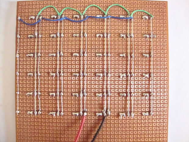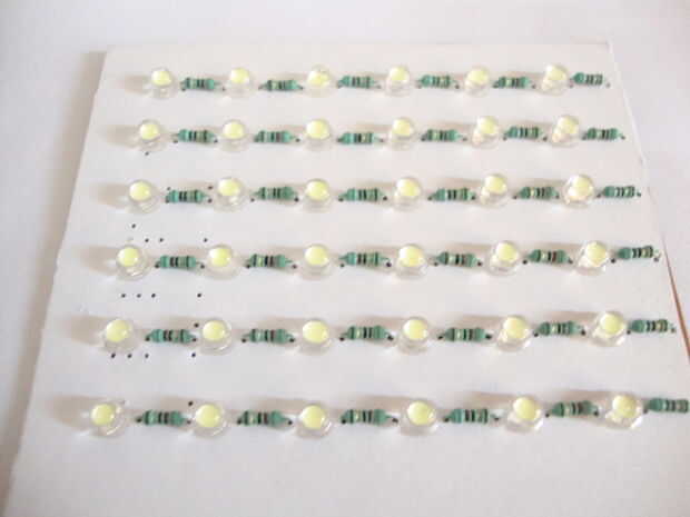 Después de que termines con la soldadura de los LED, conecte todos los conjuntos de leds en paralelo. Entonces simplemente conectar dos largos trozos de alambre de los cables positivos y negativos.