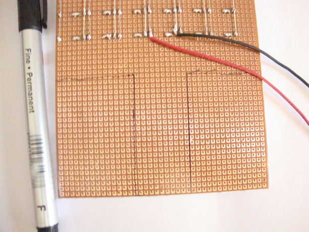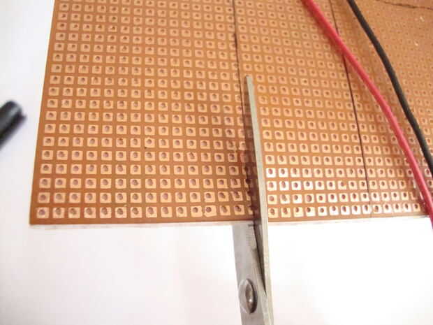 Corte el exceso perfboard que no es necesario. Deberán ser cortada en forma cuadrada con algunos izquierda pieza rectangular para pegarse a la escala. No deseche la parte sobrante ya que será necesario para soldar el circuito dimmer.