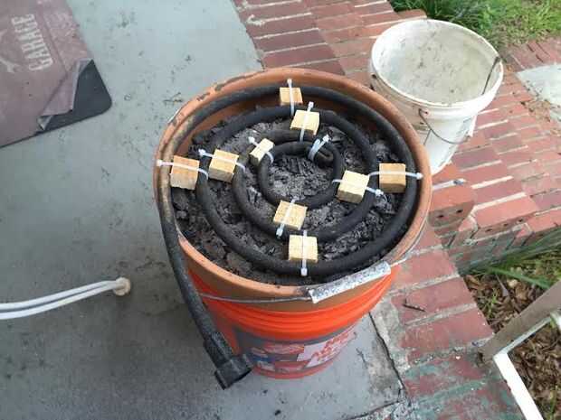 Llenar la olla de barro con ceniza de madera (cedro, roble, etc.) Luego, coloque el rollo de manguera de remojo en la parte superior. Conecte la manguera de remojo para una manguera de jardín y encienda el agua. Eso es todo! La mezcla de agua y madera ceniza crea lejía. El agua filtra a través de las cenizas y los agujeros de la maceta de arcilla, y la lejía final recogerá en su cubo inferior. Dependiendo de cuánta lejía desea a la vez, cortar el agua después de unos 5 minutos. Puede tomar la lejía fuera el cubo de fondo como sea necesario y volver a utilizar este sistema una y otra vez. El ph de la lejía debe ser 14, y puede probar el ph de su agua de lejía acabado con tiras de ph que venden en el Departamento de acuario de walmart.